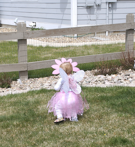 A few weeks ago (slacker poster here!) there was a Tulip Fairy Parade in Boulder. Mark wasn’t feeling well so we ended up not making the parade … but I did make Elsie some wings and parade her around our yard.