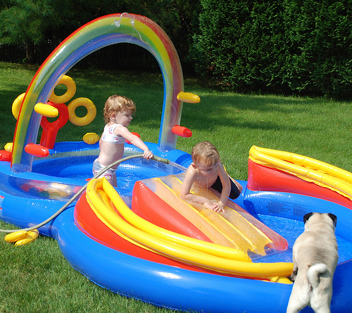 We had a few essentials waiting for us when we arrived to the house – thank you amazon prime – including this pool for the kids. We didn’t have a compressor so we relied on Scott’s Hot air. Mark was in the garage looking for some pump … and arrived just in time for the pool to be assembled and Scott to be passed out on the floor.
